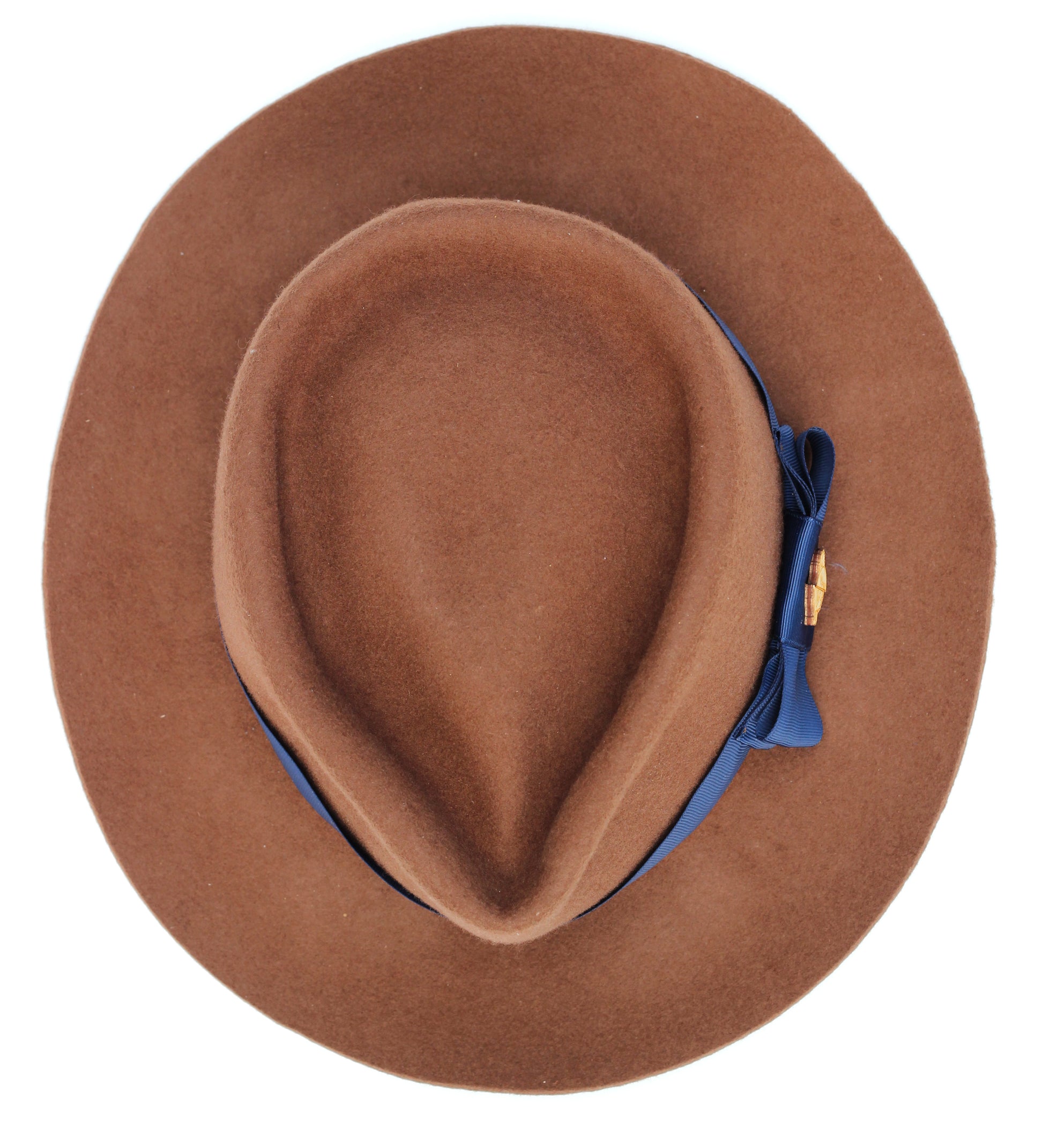 - Hat Band: 2" Navy Blue Grosgrain Ribbon