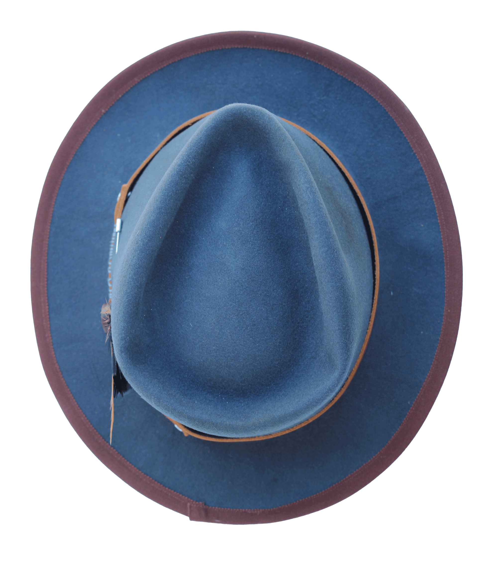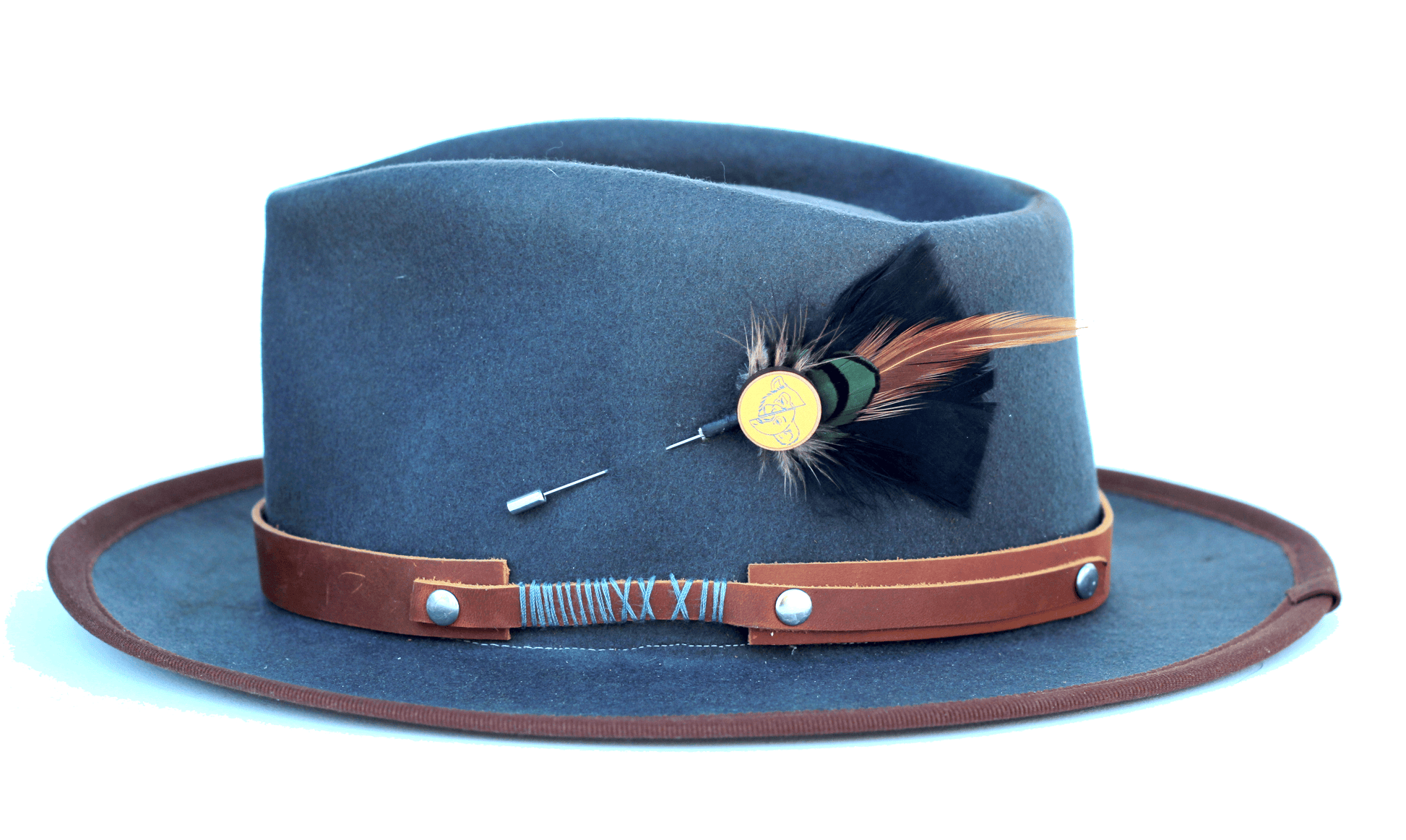 Colombian handmade fedora. This all-season hat features a Teardrop shape mid crown center with a 3 inch hard brim with a small curve. Leather hatband with wooden logo pin. Also a wicked feather!