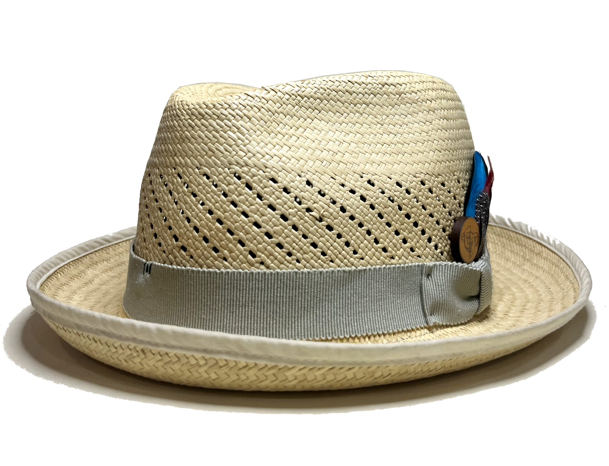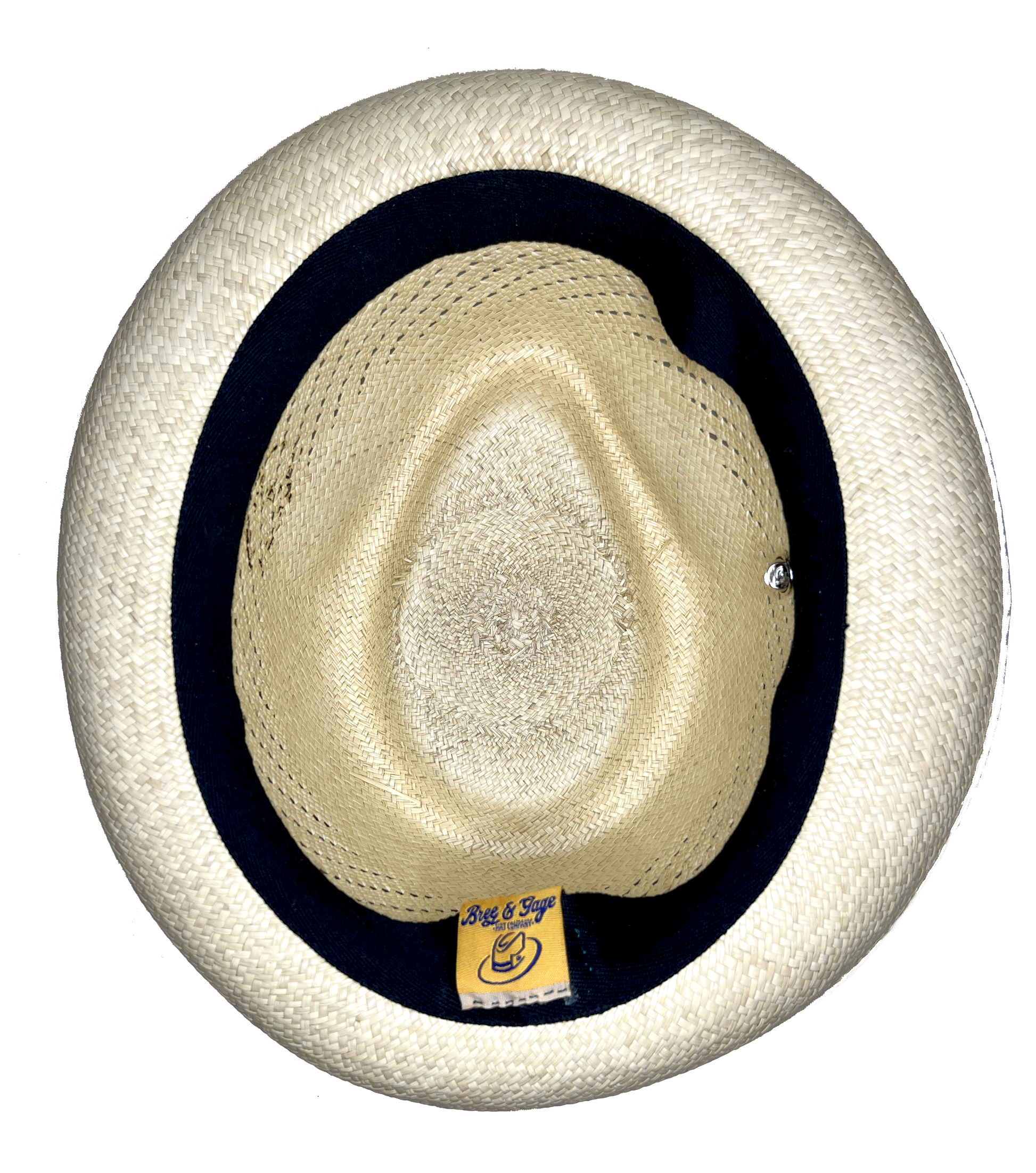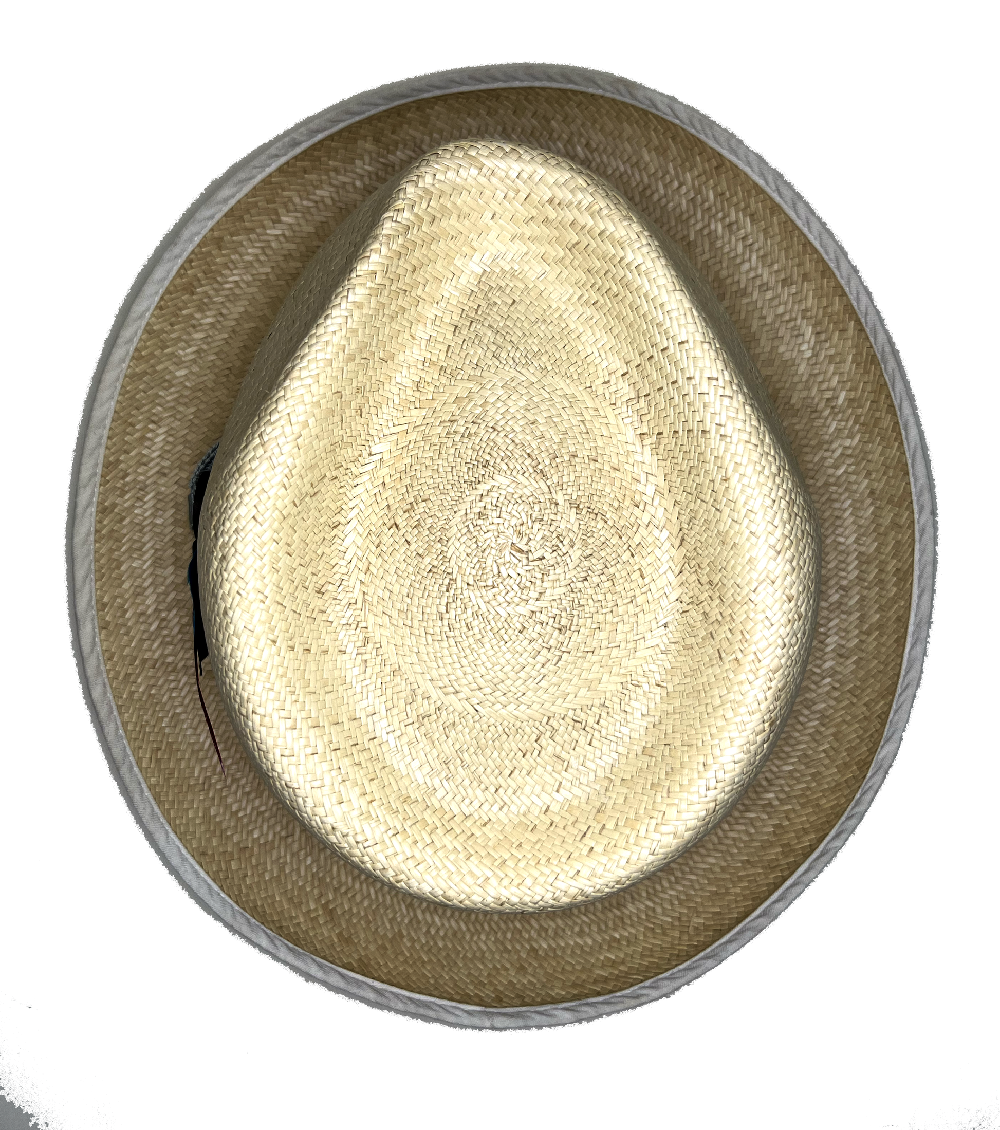 Colombian handmade fedora. This summer straw Fedora features a tear drop short crown center with a 2 inch hard brim with a mid curve.