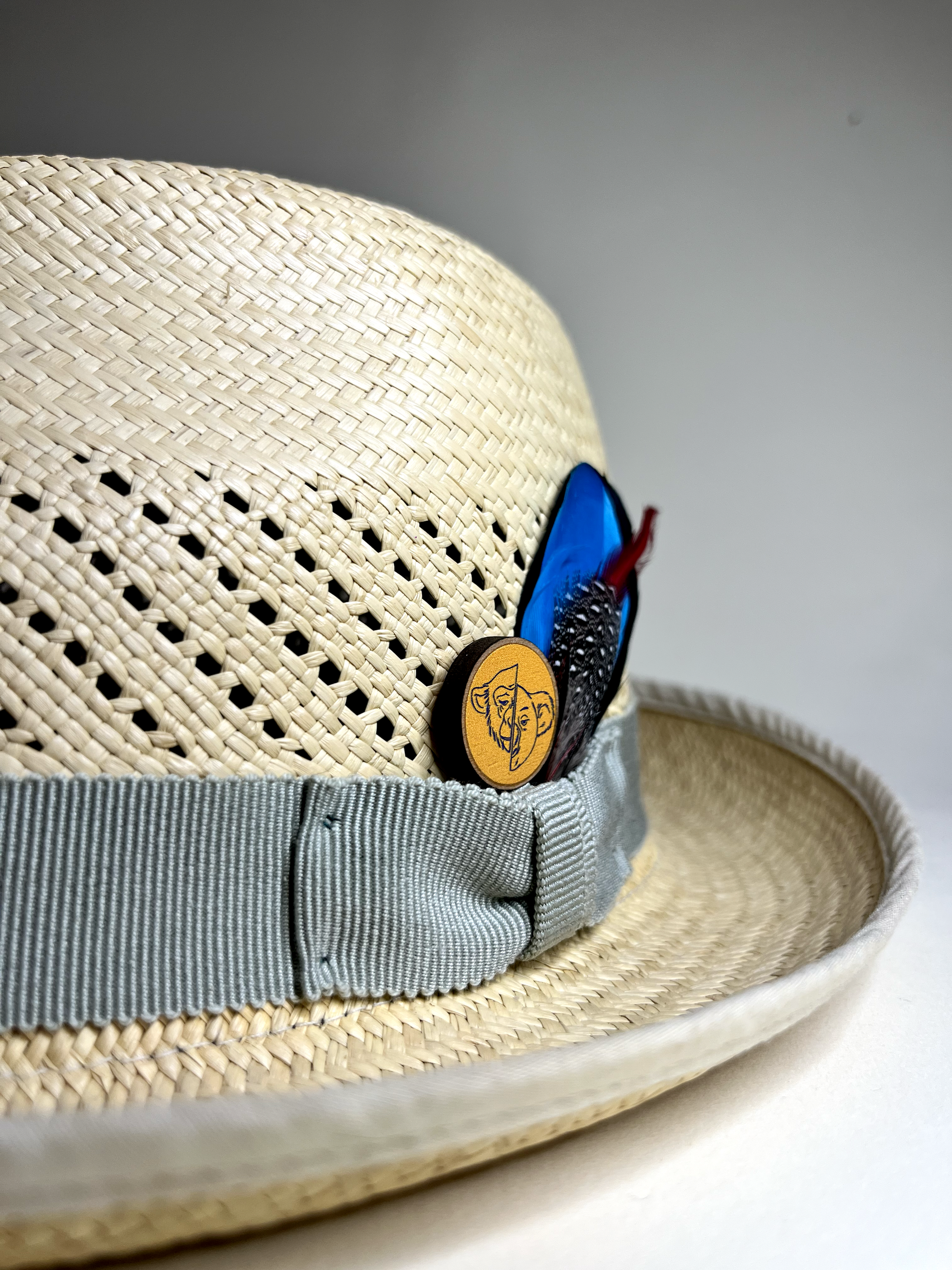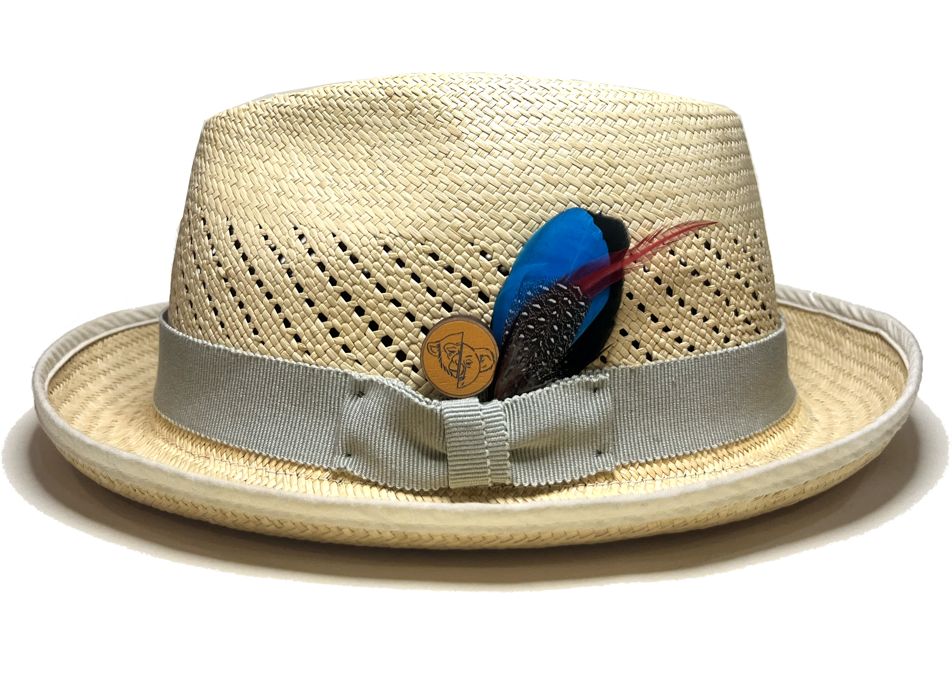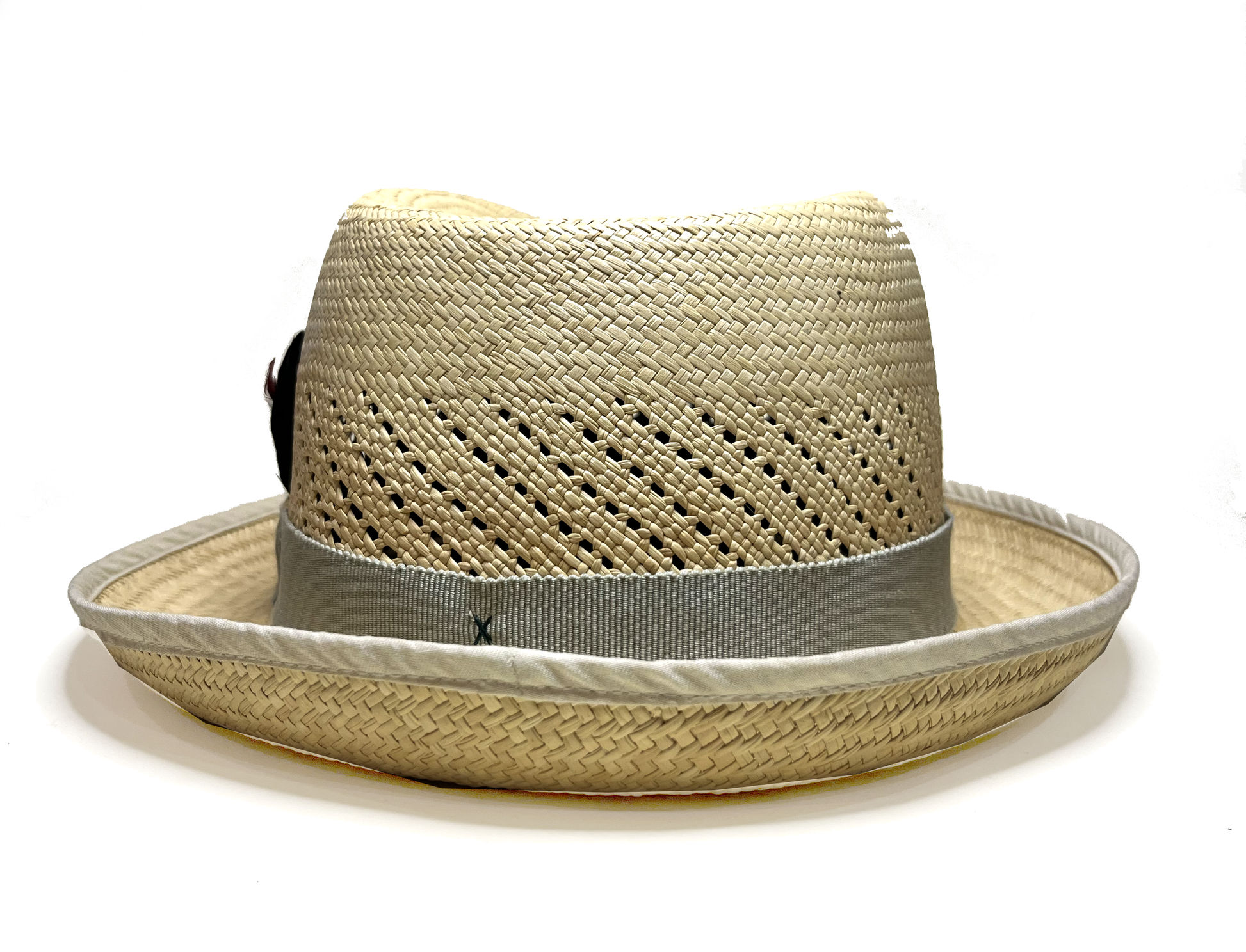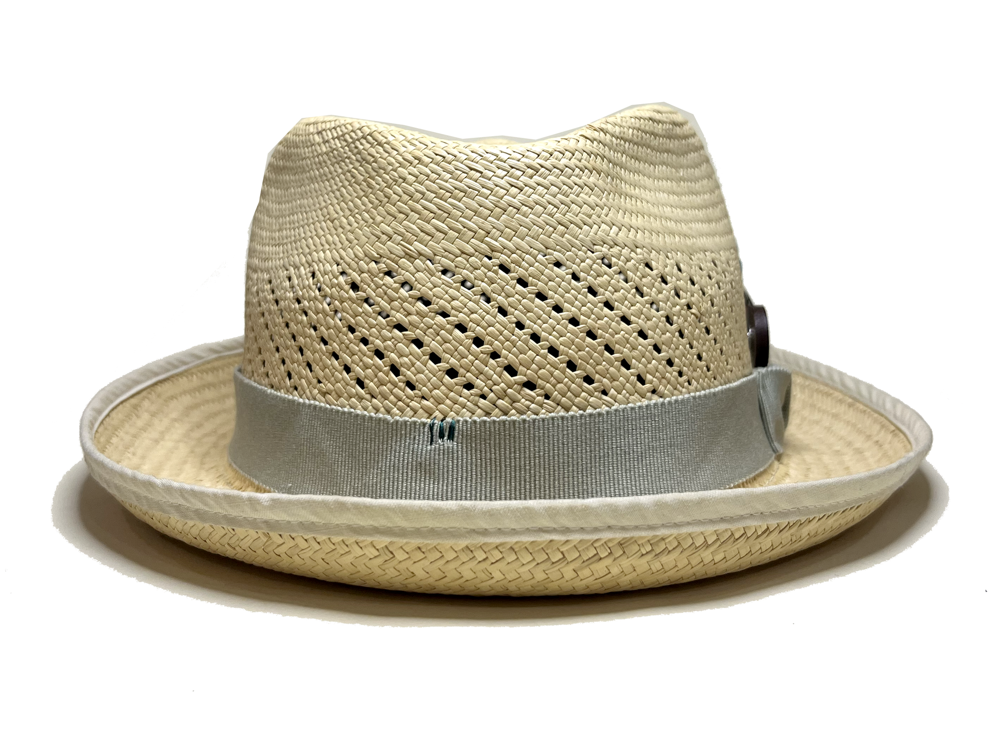 Colombian handmade fedora. This summer straw Fedora features a tear drop short crown center with a 2 inch hard brim with a mid curve.