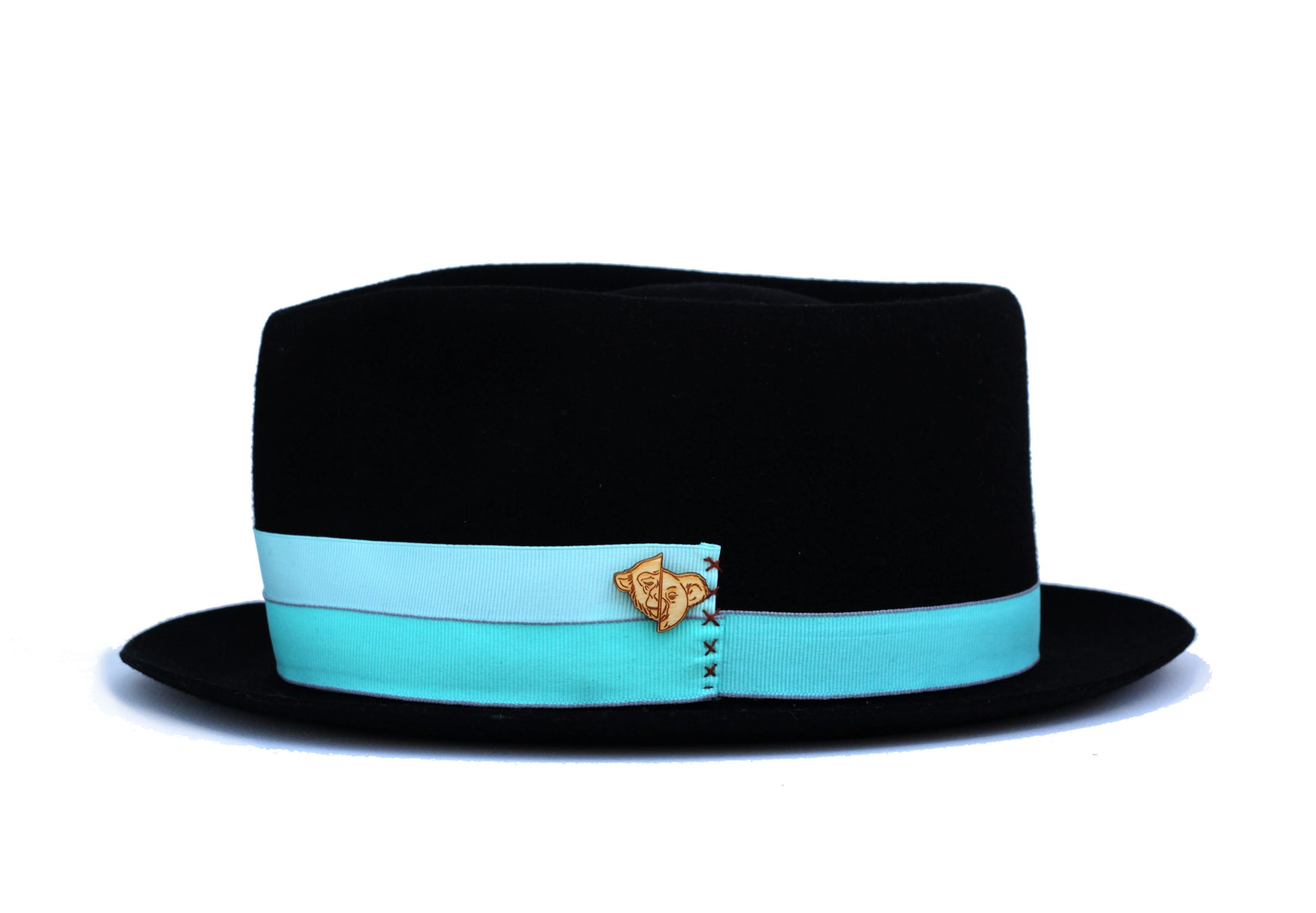 Colombian handmade fedora. This all-season hat features a tear drop shape short crown center with a 2 inch hard brim with a small front curve. 2 inch grosgrain hatband with grosgrain brim wrap with wooden logo pin. Also a wicked sweatband.