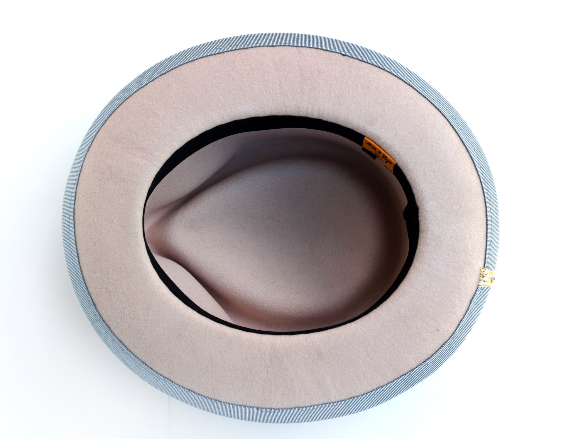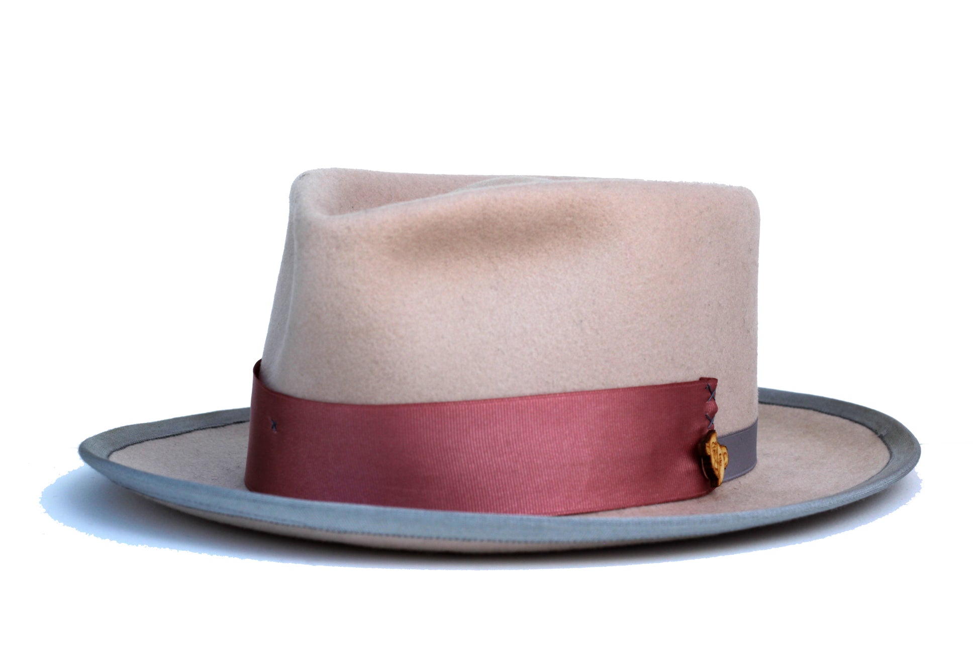 Colombian handmade fedora. This all-season hat features a tear drop shape tall crown center with a 2.5inch hard brim with a small front curve. 2 inch grosgrain hatband with grosgrain brim wrap with wooden logo pin. Also a wicked sweatband.