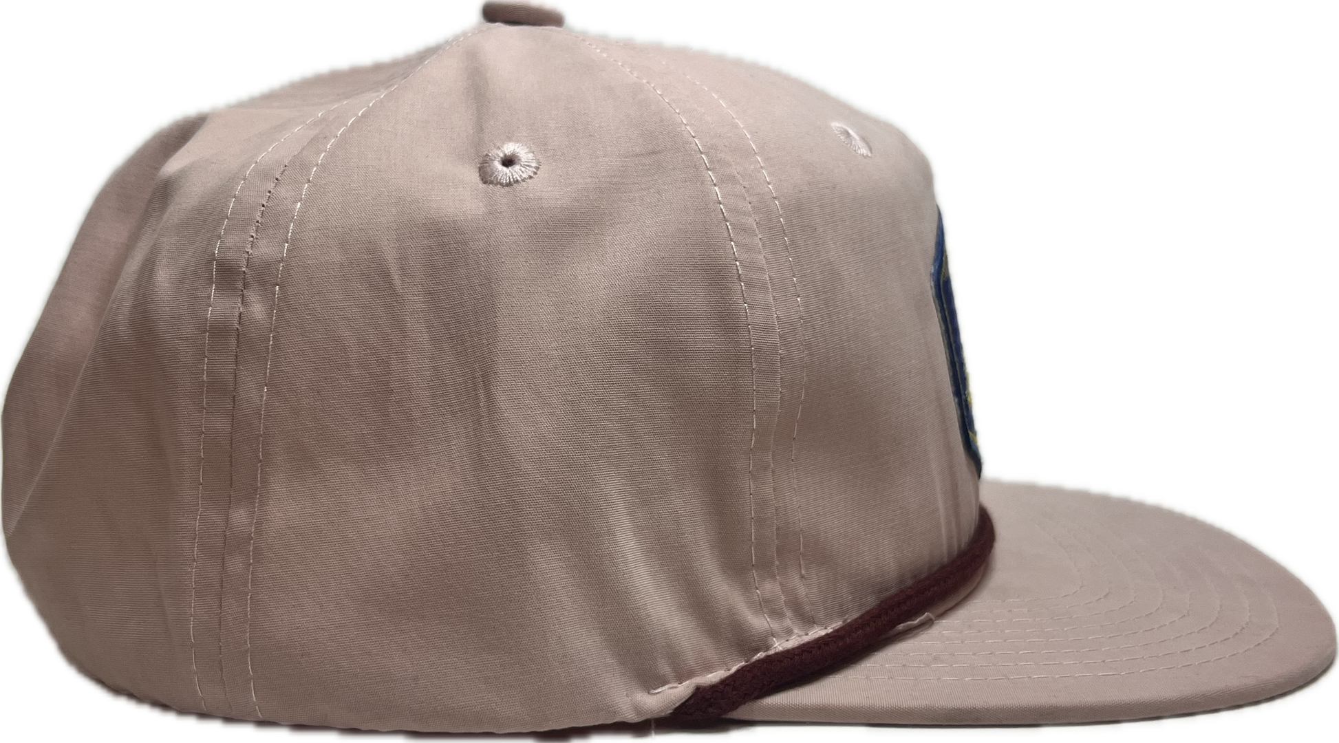 The Decky 6032 - Classic Rope Cap, 5 Panel Flat Bill Hat, Snapback is an unconstructed 5 panel cap. It features a flip-up buckram, braid at the base of the crown, and a retro flat bill style. The cap has an integrated cotton sweatband, ventilation eyelets, and is finished with a plastic snap closure for a perfect fit.