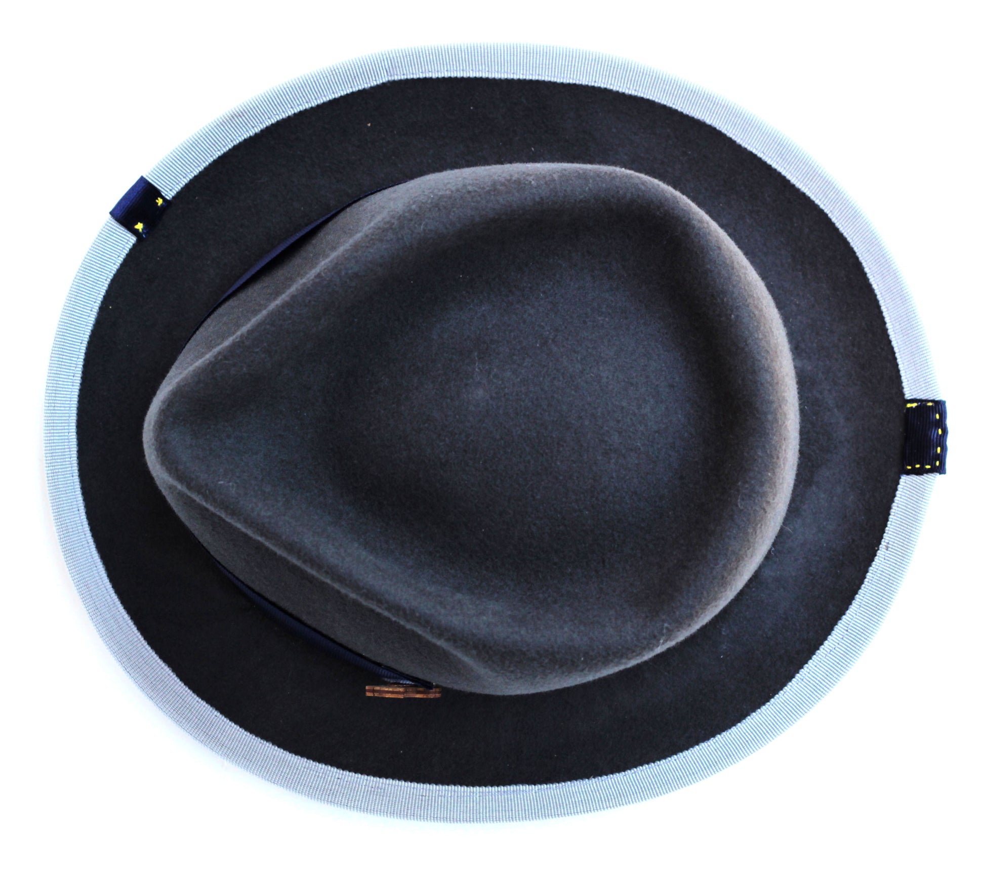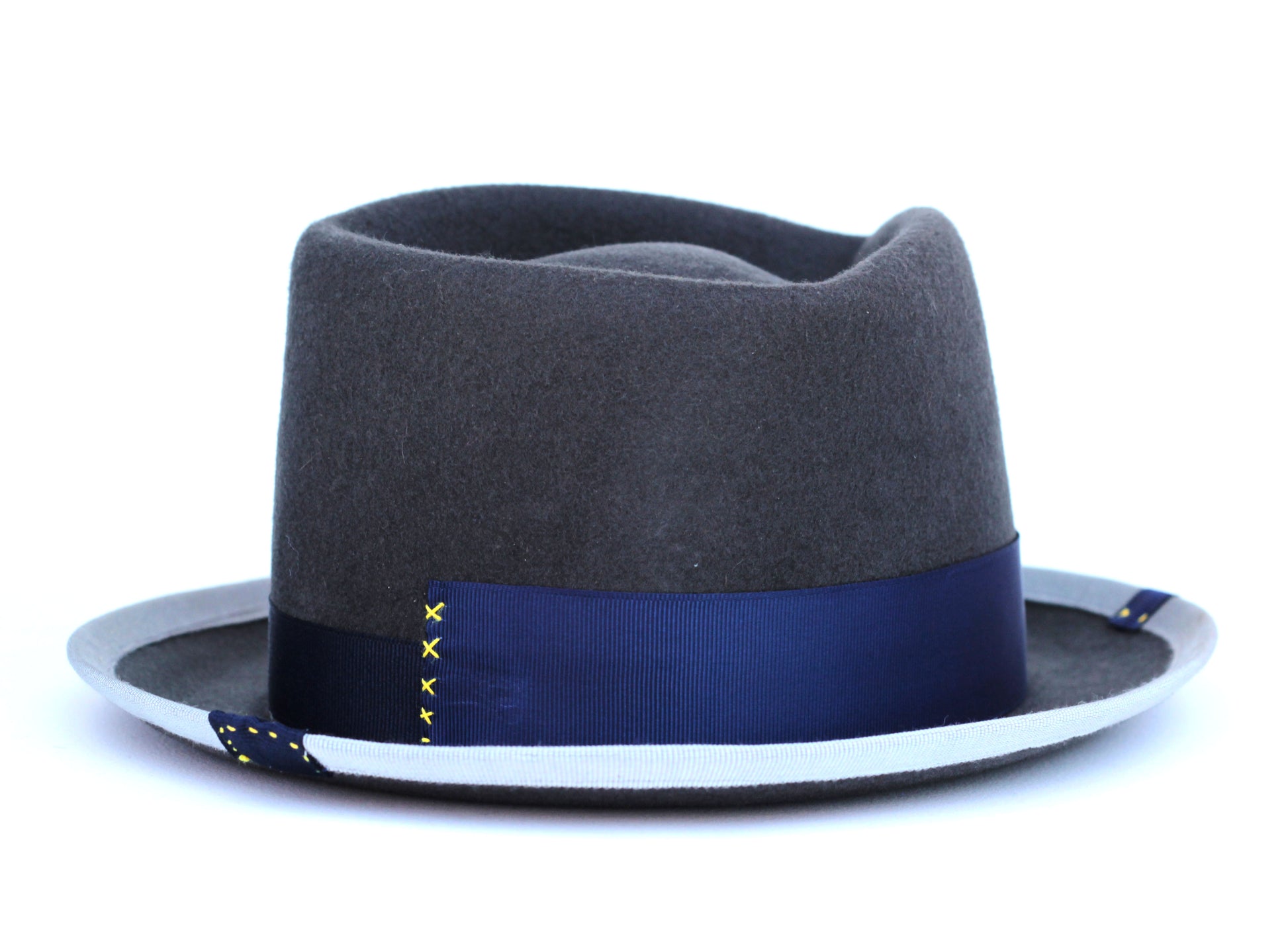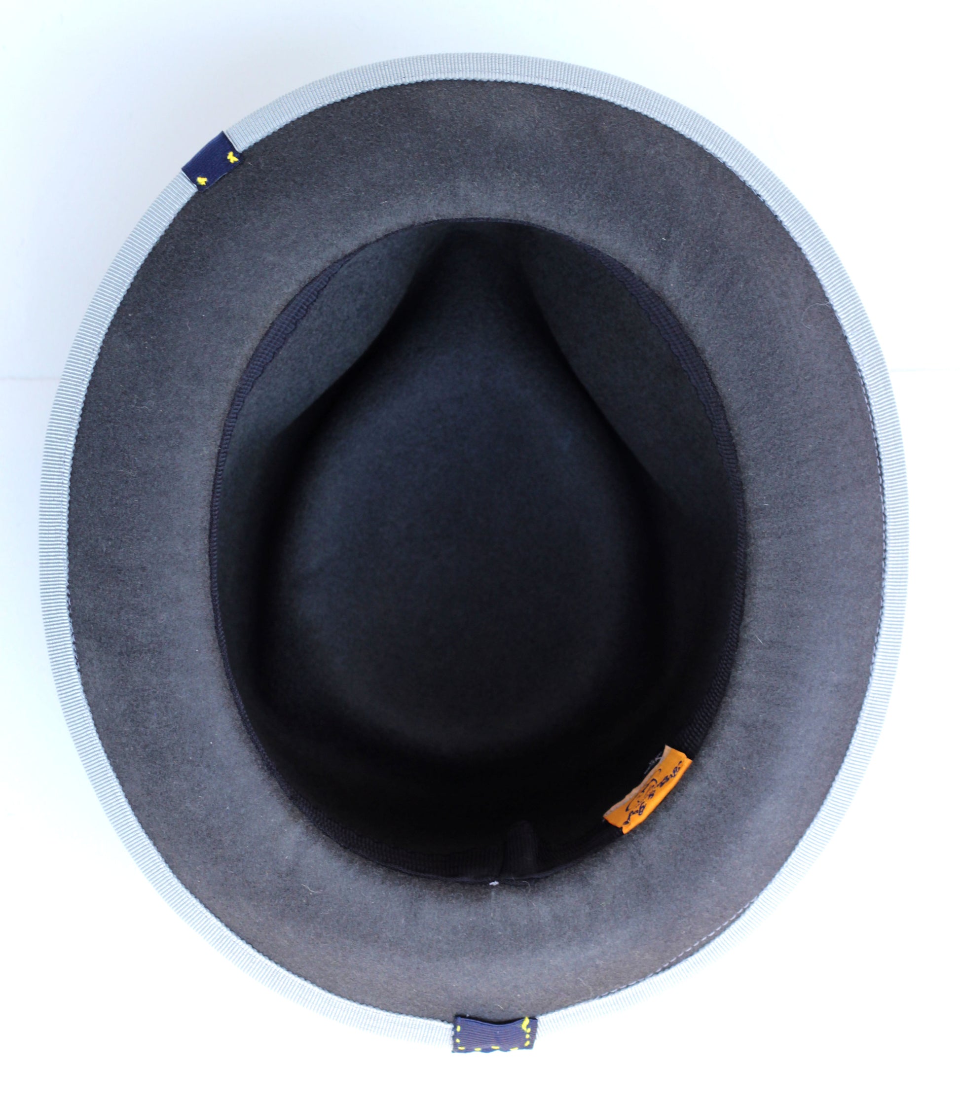 Colombian handmade fedora. This all-season hat features a tear drop shape tall crown center with a 2 inch hard brim with a small front curve. 2 inch grosgrain hatband with grosgrain brim wrap with wooden logo pin. Also a wicked sweatband.