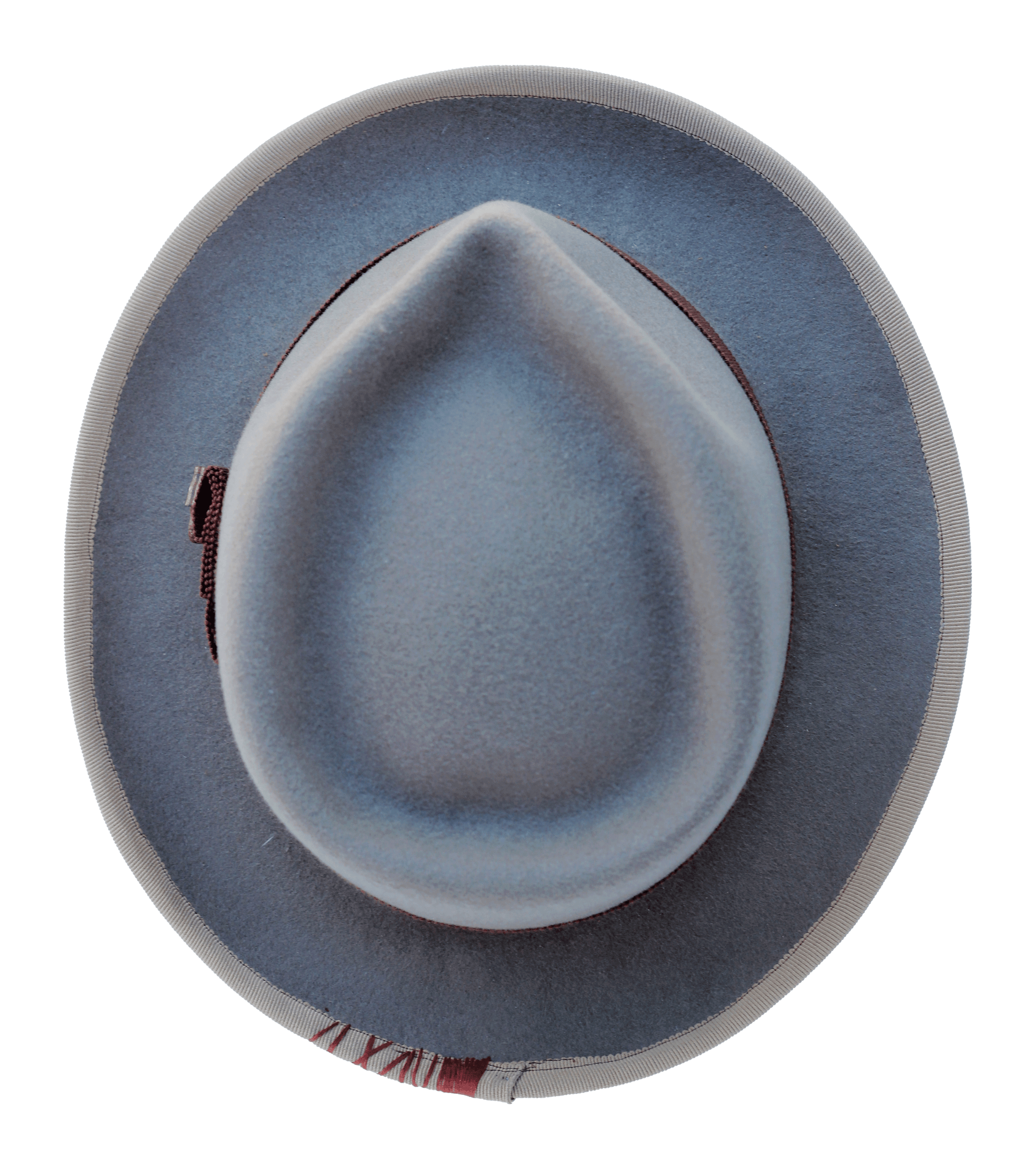 Colombian handmade fedora. This all-season hat features a Teardrop shape mid crown center with a 2.5 inch hard brim with a small curve. Grosgrain hatband with wooden logo pin.